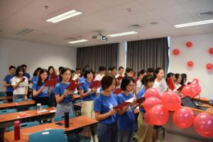最后,全体同学合唱《我与我的祖国》、《歌唱祖国》和《今天是你的生日,我的中国》,共同祝福祖国生日快乐。本次活动在同学们的热烈的掌声和欢快的祝福声中圆满结束。此次活动内容丰富、形式多样、异彩纷呈!预科班辅导员文圣老师和预科班同学做了大量细致的准备工作,研究生辅导员孟晖老师和研究生同学也积极参与,张东英、王红欣老师也利用业余时间跟同学们排练合唱。大家的辛勤付出确保了此次主题班会的圆满成功。