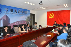 3月21日下午3:00,bat365在线中国登录入口在西校院国际大厦1016室召开新学期教学工作会议。会议由副院长蔡鸿老师主持。参加会议的有各教研室主任与课型组组长、院长助理仵胜奇老师、办公室主任匡琳琳老师、教学秘书庄双老师以及外事秘书金玲、谭雯文老师,共计14人。会议由仵胜奇老师主持。