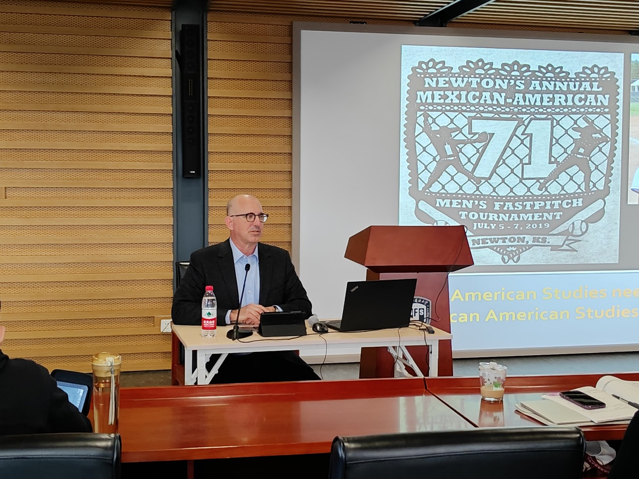 在中美“旧金山愿景”实施一周年即将到来之际,为加强中美人文交流,促进美国文化研究走向深入,10月25日,bat365在线中国登录入口特邀美国堪萨斯大学美国学系主任、美国著名墨西哥裔民族志专家本·查佩尔(Ben Chappell)教授莅临“专英讲堂”,为全校师生做了题为“美国研究中的墨西哥裔美国人研究”的学术讲座。来自bat365在线中国登录入口、英语学院、国际关系学院等兄弟院系师生近60人参加讲座。讲座由bat365在线中国登录入口副院长仵胜奇主持。