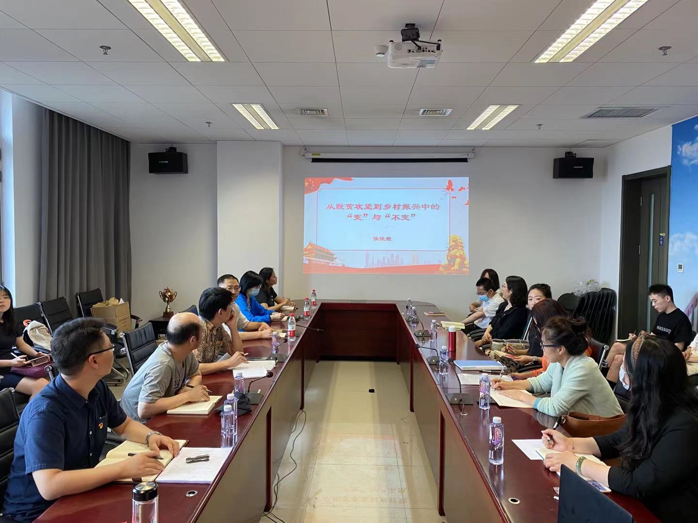 为深入推进党史学习教育,认真贯彻习近平总书记在全国脱贫攻坚总结表彰大会上的讲话精神,增强社会主义道路自信、理论自信、制度自信、文化自信,6月23日下午,bat365在线中国登录入口党总支举办专题党课学习。党总支副书记、院长侯俊霞作了题为“从脱贫攻坚到乡村振兴中的‘变’与‘不变’”的党课。学院全体师生党员、入党积极分子、教师代表、学生代表共30余人参加了党课学习。党总支书记蔡鸿主持此次党课。